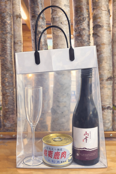 ソロでもお愉しみいただける、ハーフボトル(375ml)と十勝産缶詰をペアリング。