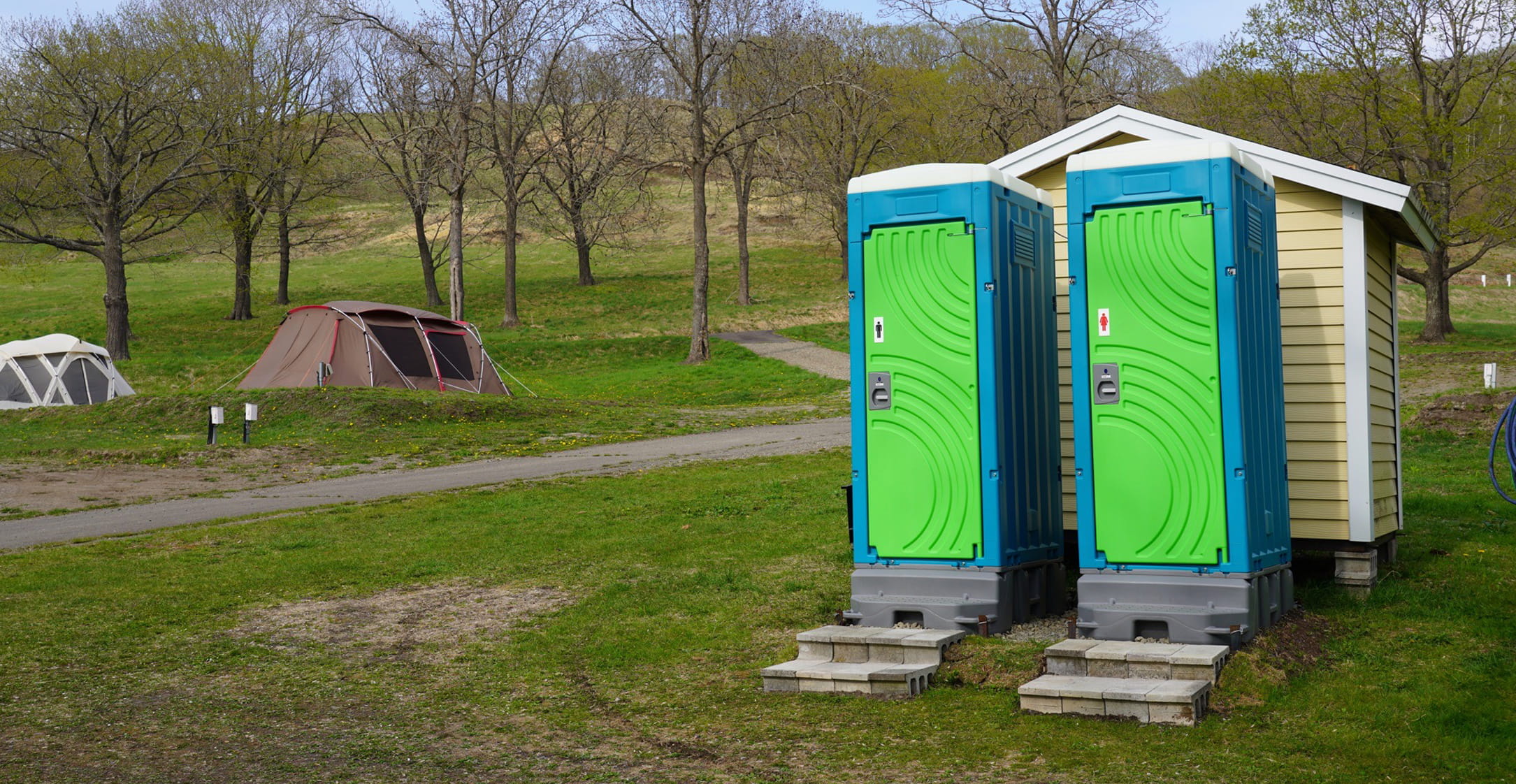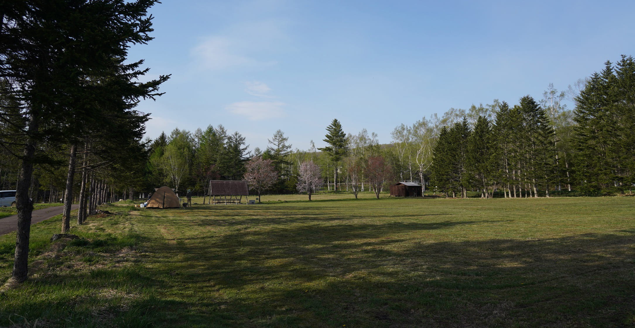 オートサイトから南西にあるフリーサイトエリアは北海道らしい白樺並木の隣にあり、GWから10月末まで予約なしで利用が可能です。広く平坦なエリアで50張のテントが設置可能、炊事棟や炭捨て場、ウォシュレット付きトイレなど設備も充実しています。ライダーの方も大歓迎です。ぜひお気軽にご利用ください。